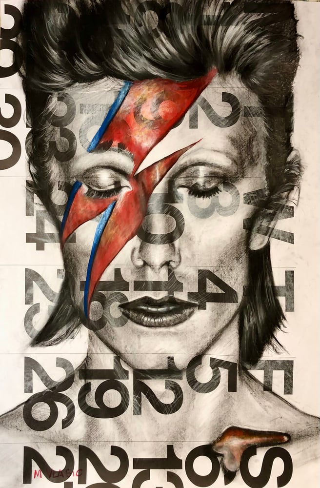 NEW RELEASE David Bowie II Original Charcoal Drawing on Stendig Calendar Paper by M Vlasic